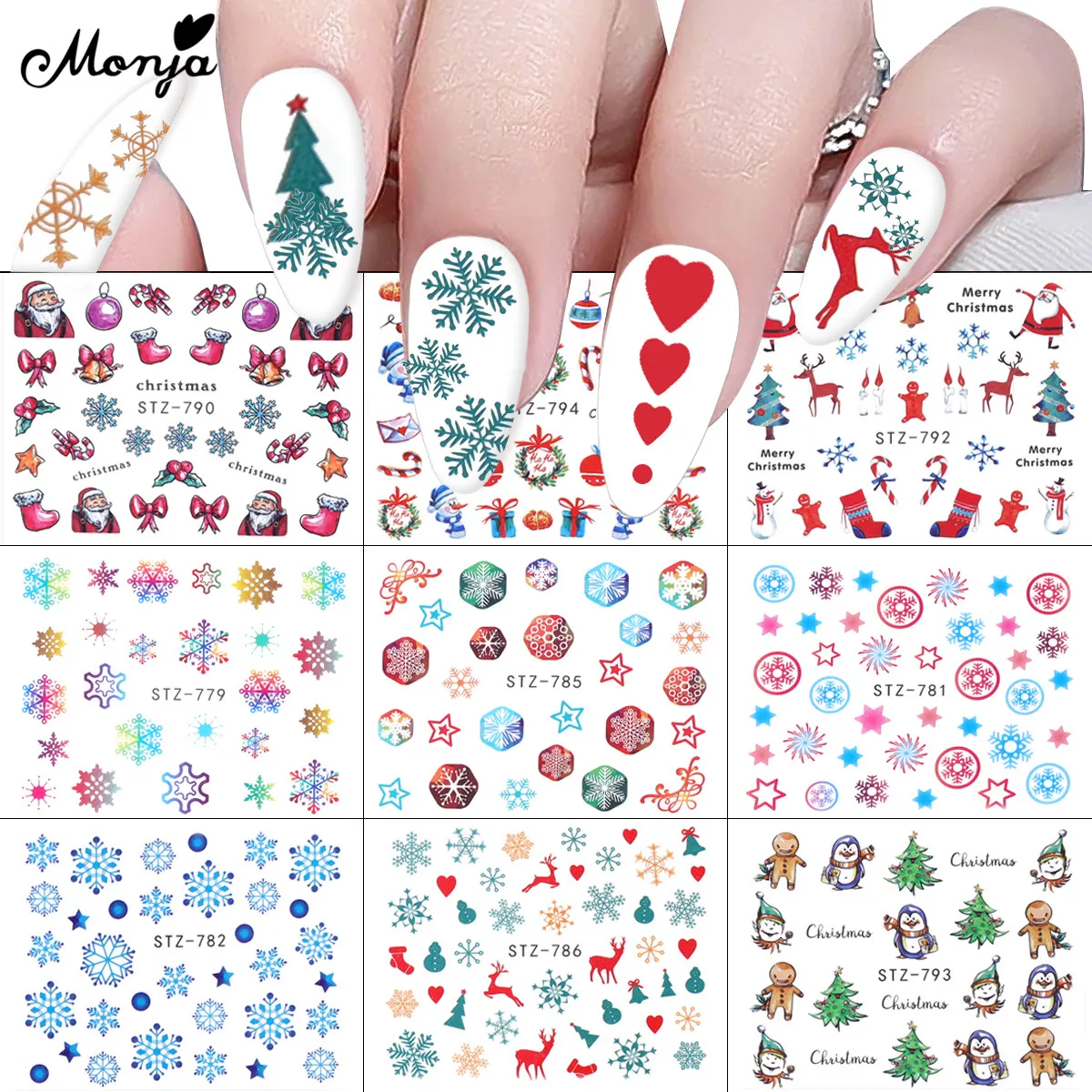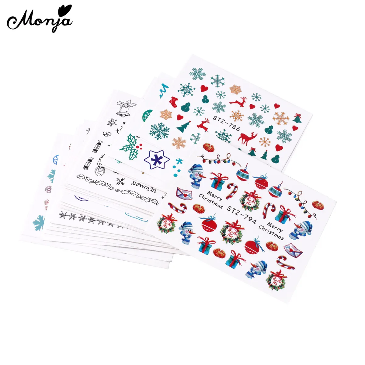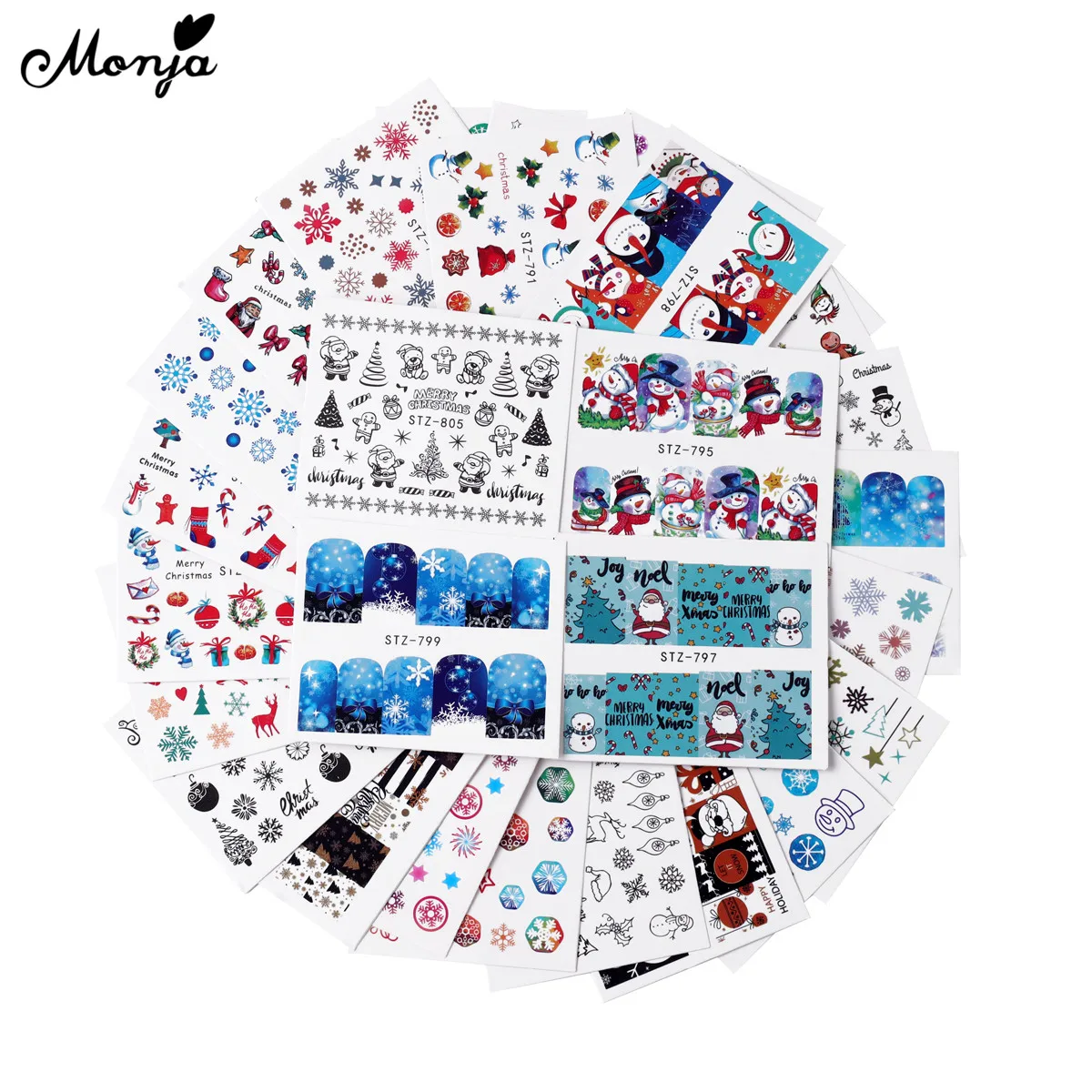 Monja 30 шт.компл. Рождественские серии переводные наклейки для ногтей Санта-снеговик Снежинка Рождественская елка узор водяной знак переводные наклейки для ногтей