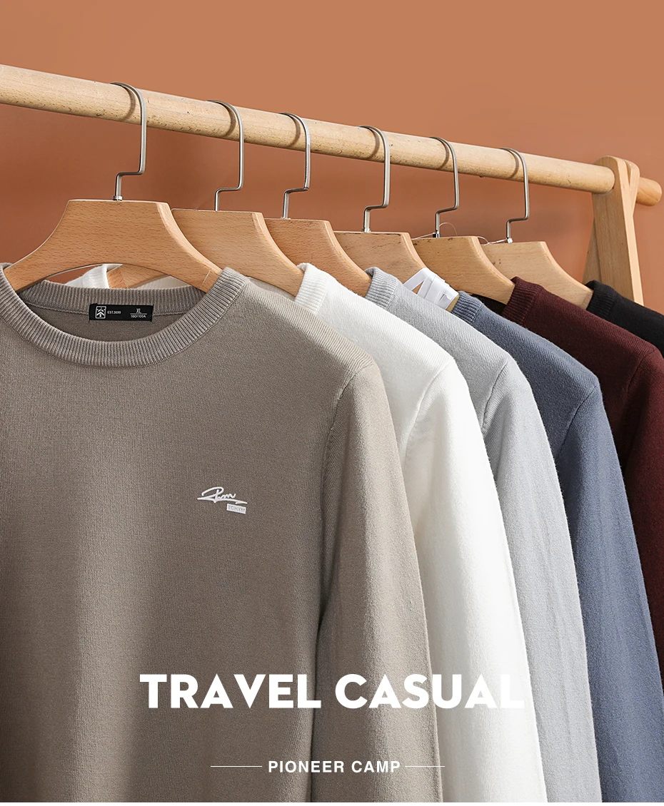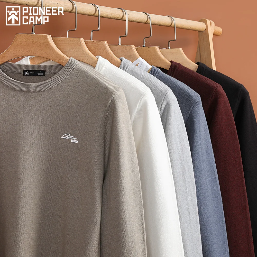 Pioneer Camp 2021 новый мужской пуловер свитер однотонный круглый вырез мягкий теплый мужской свитер AMS116689