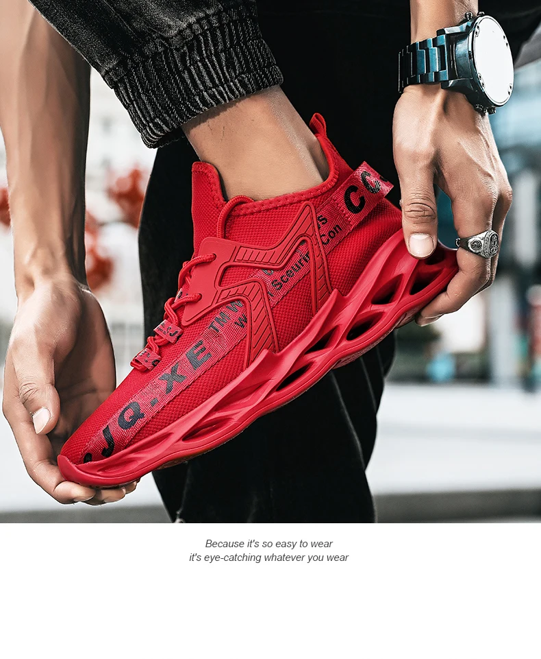 Кроссовки YRZL мужские, удобная дышащая сетчатая повседневная спортивная обувь на шнуровке, легкие износостойкие красные искусственные мужские