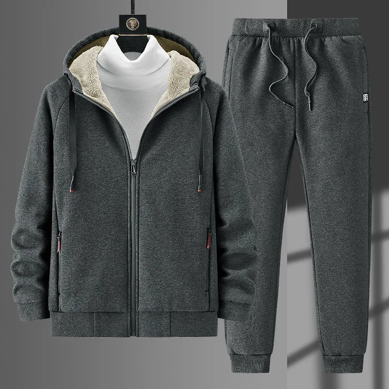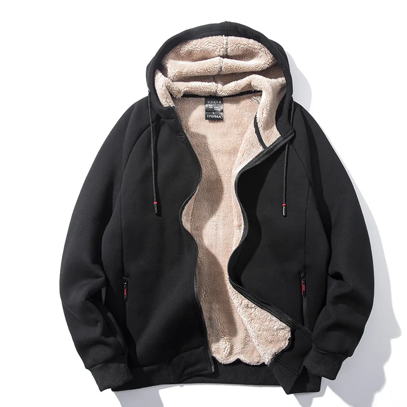 Мужской утепленный кардиган с капюшоном, повседневная спортивная одежда из хлопка и флиса, спортивный костюм из бархата ягненка, пальто большого размера для зимы