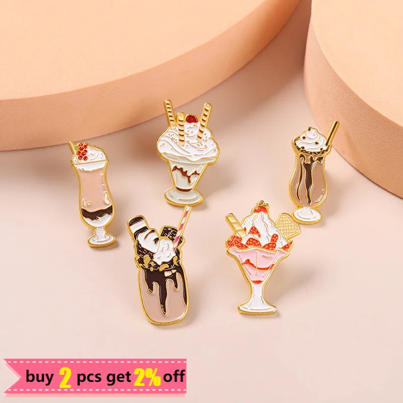 Эмалированные заколки для мороженого, милые Мультяшные Броши с едой для женщин, для рюкзака, одежды, лацканов, значки, металлические украшения, подарки, оптовая продажа