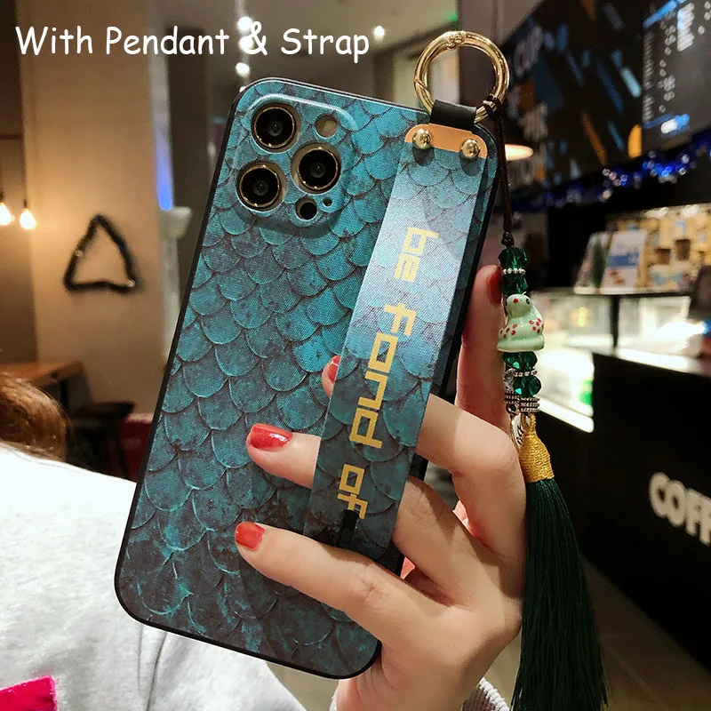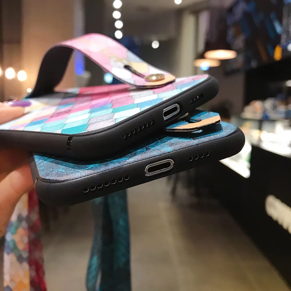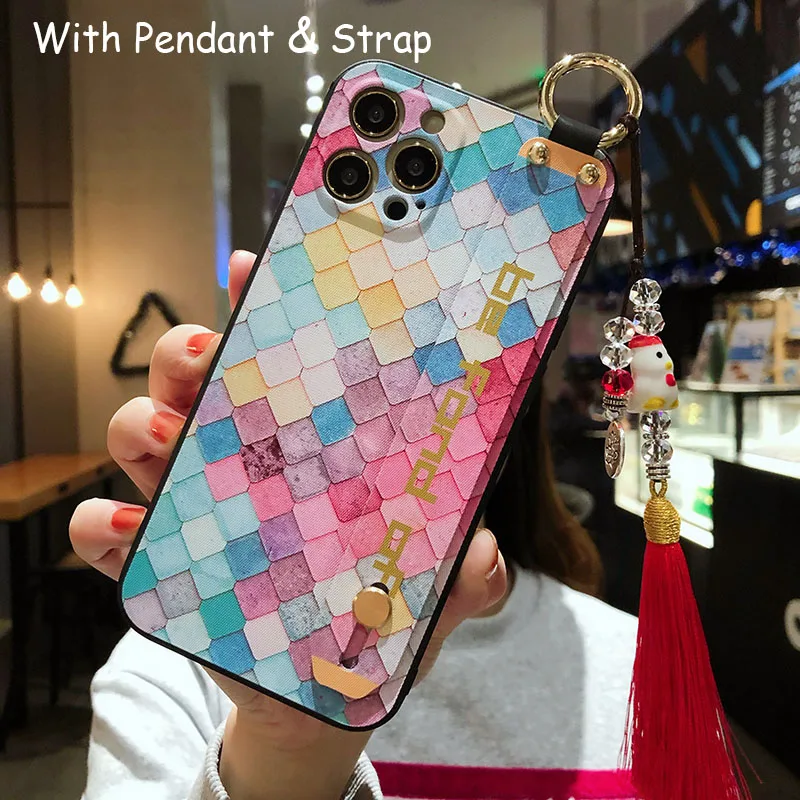 Модный чехол с ремешком на запястье для iPhone 13 12 11 Pro Max Mini XS XR 8 7 Plus, роскошный квадратный держатель для телефона, чехол-подставка
