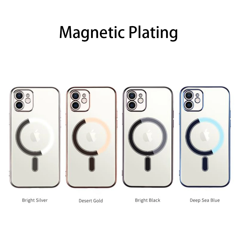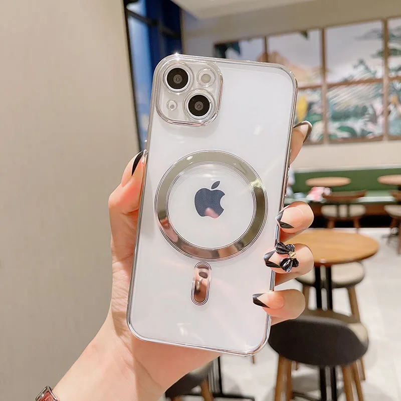 Прозрачный силиконовый чехол с гальваническим покрытием для iPhone 13, 12, 11 Pro Max, 12 Mini, Беспроводная зарядка