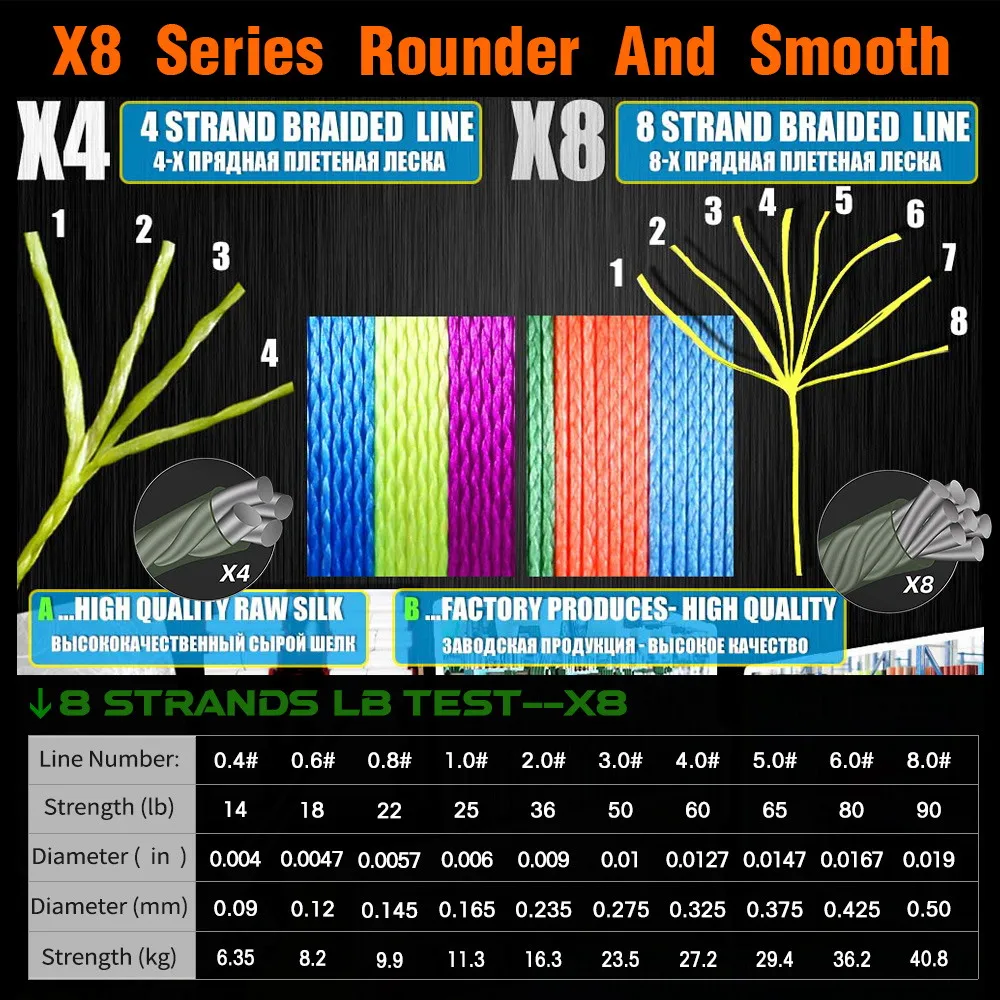 Номер лески 8,0 #: 0,500 мм/85 фунтов/38,5 кг