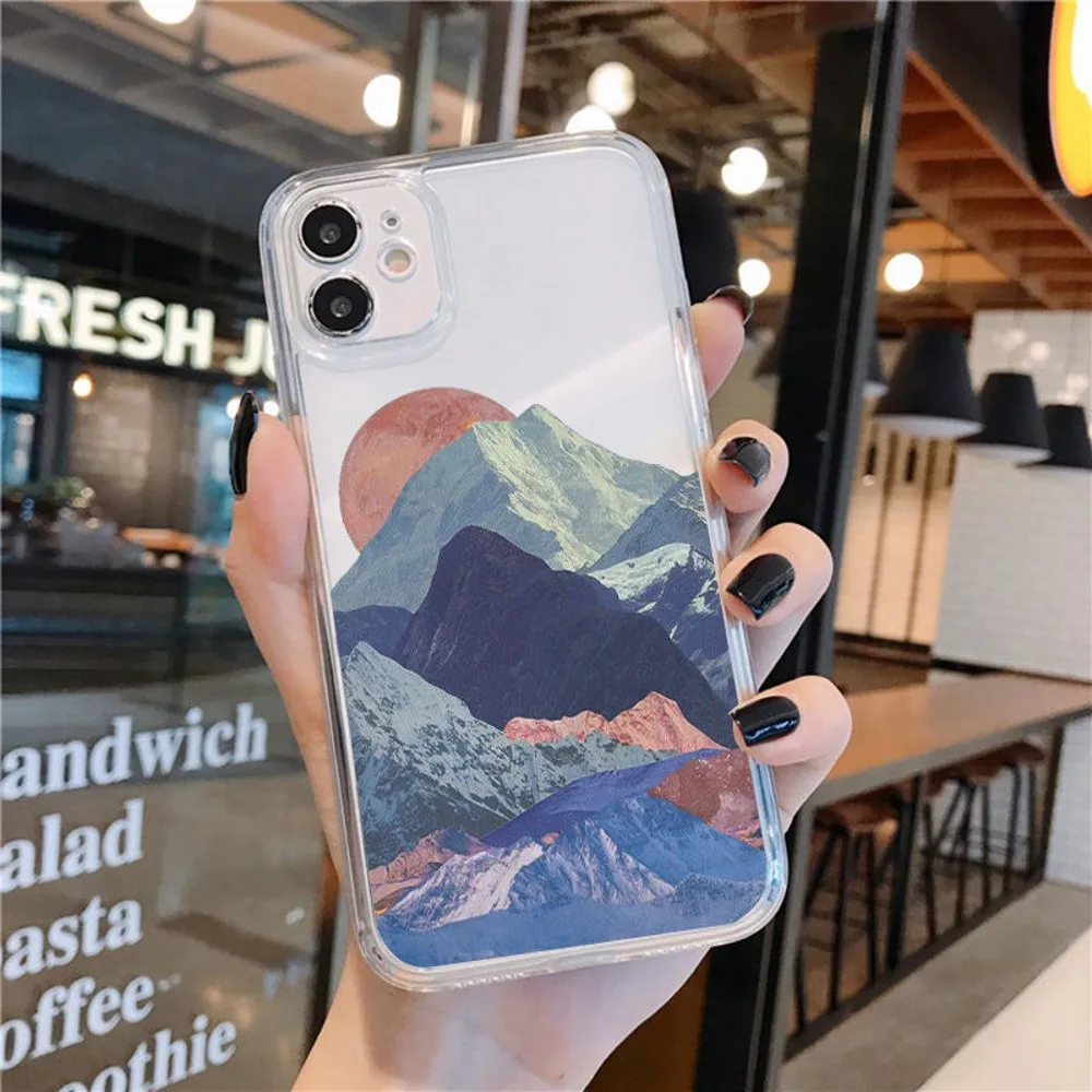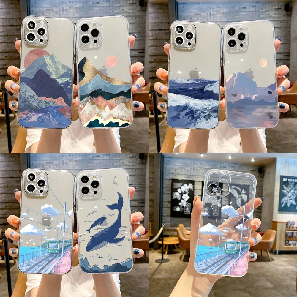 Чехол для телефона с рисунком Пейзажа для iPhone 11 12 11 Pro MAX 7 8 Plus X XR XS Max SE20, прозрачный мягкий чехол из ТПУ для iPhone 13, задняя крышка