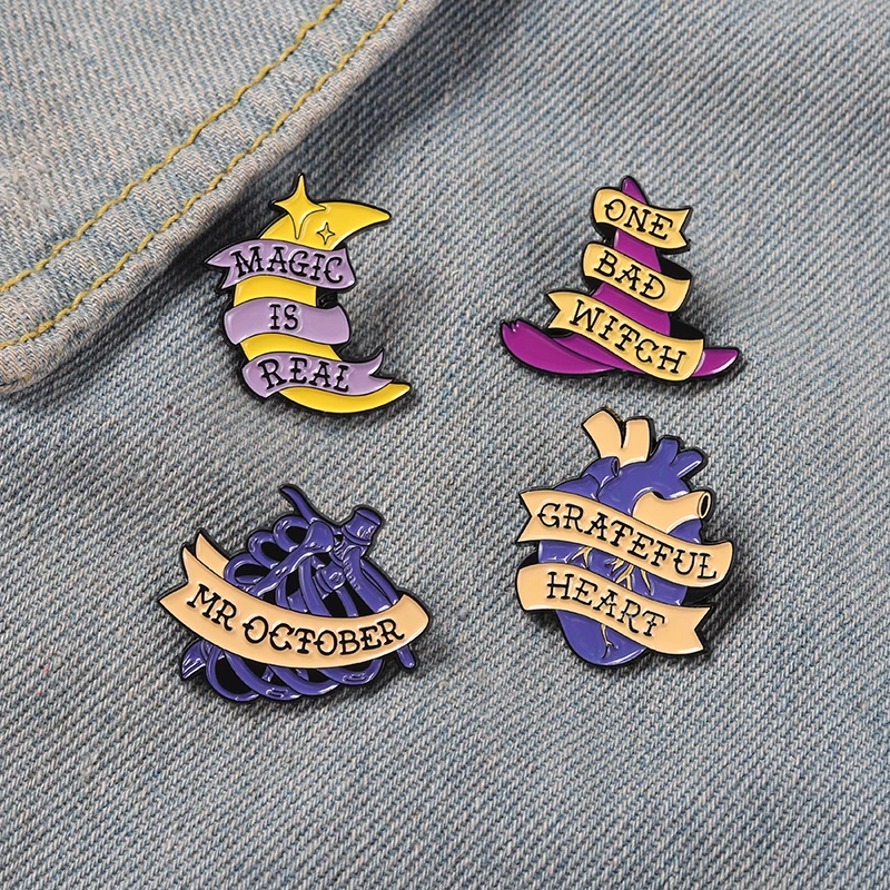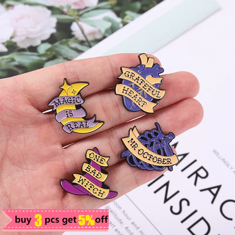 Эмалированные булавки Moon Heart с мультяшным цитатой, брошь ведьмы для женщин, рюкзаков, одежды, металлический значок в стиле панк, булавка на лацкан, ювелирные изделия, подарок, оптовая продажа