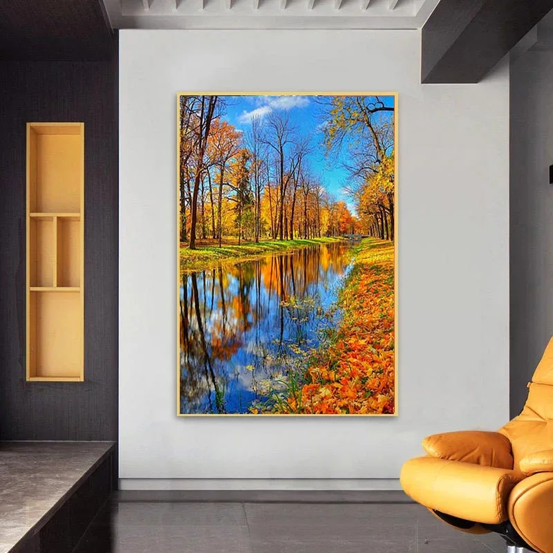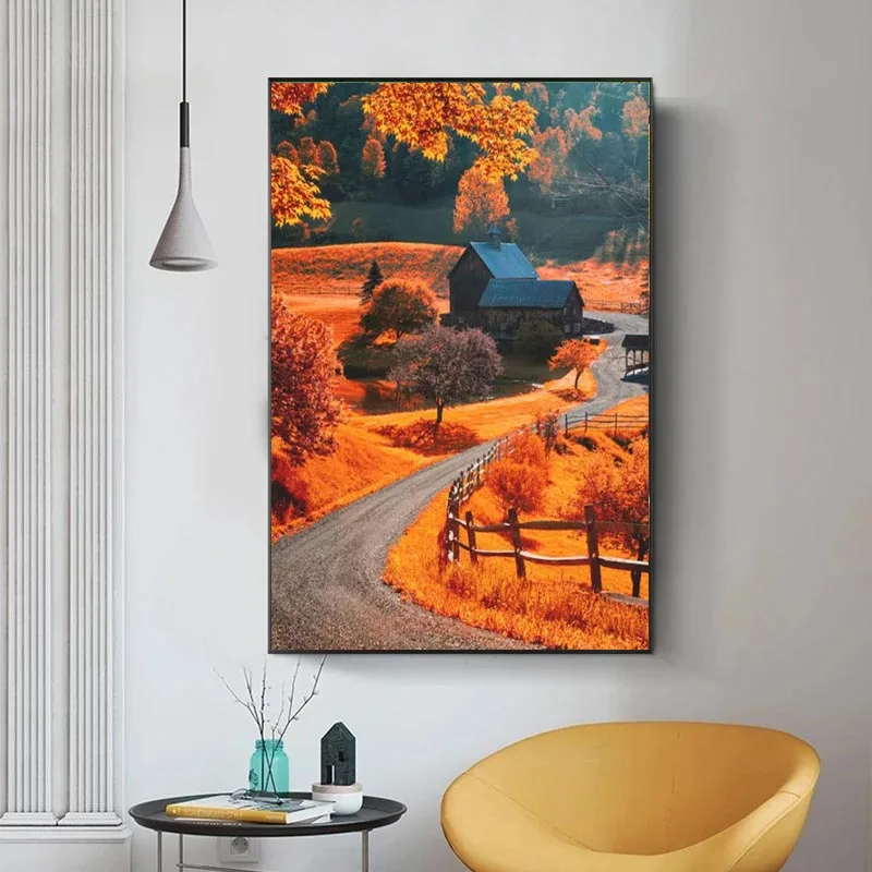 Осеннее украшение, Настенная картина с изображением золотого кленового леса, картина с Естественным ландшафтом, плакат и печать на холсте, картина, украшение