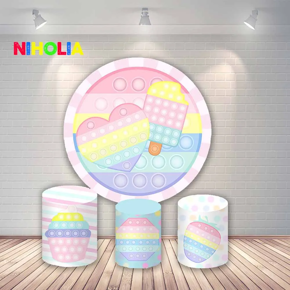 Niholia Pop It Fidget Circle фотография фон для девочек 1-й День рождения радуга фото фон розовый круглый виниловый фото стенд реквизит