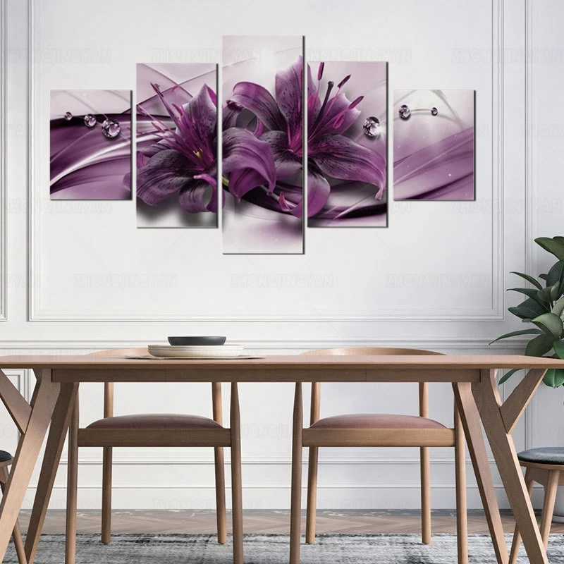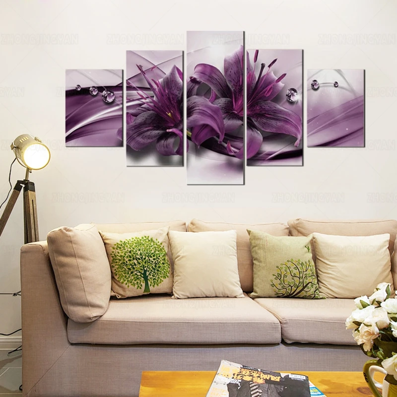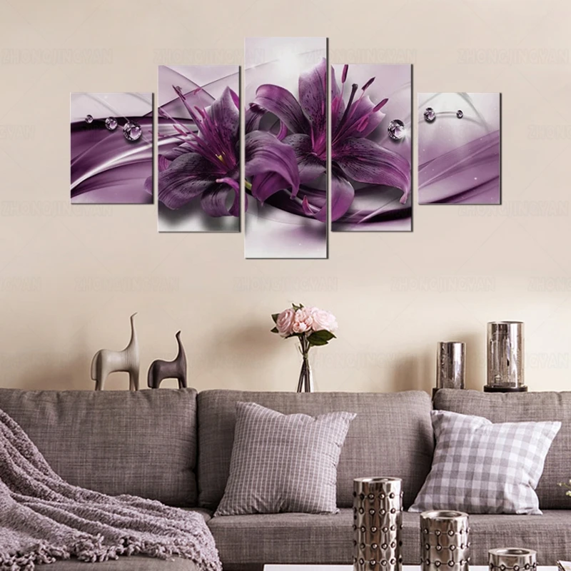5 шт. Разноцветные Настенные картины, цветы лилии, орхидеи, фиолетовые постеры, абстрактные модульные художественные картины, гостиная, спальня, домашний декор