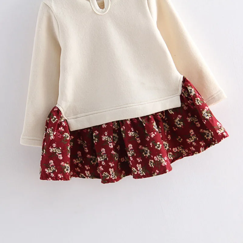 Осенне-зимнее теплое платье, детская повседневная одежда, милое мини-платье с цветочным бантом и бархатной строчкой для маленьких девочек