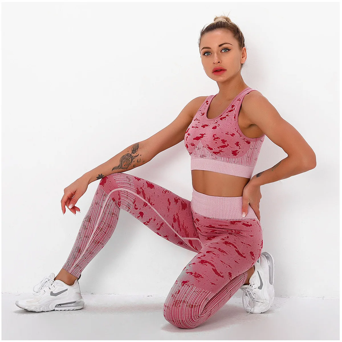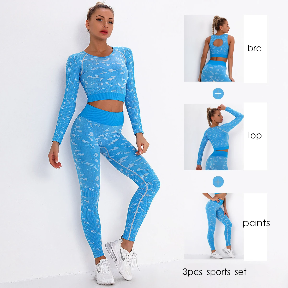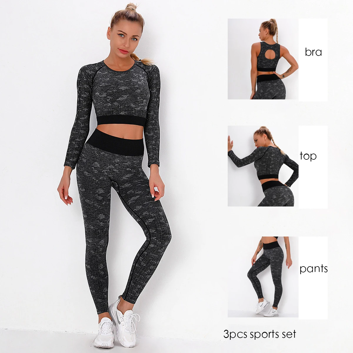 Комплекты для йоги, женская одежда 2021, тренировочный костюм с камуфляжным принтом, бюстгальтер, топ и брюки, спортивный комплект из 23 предметов, костюм для женщин XSSML