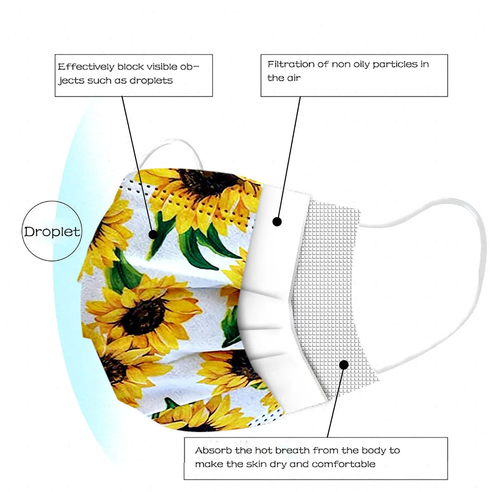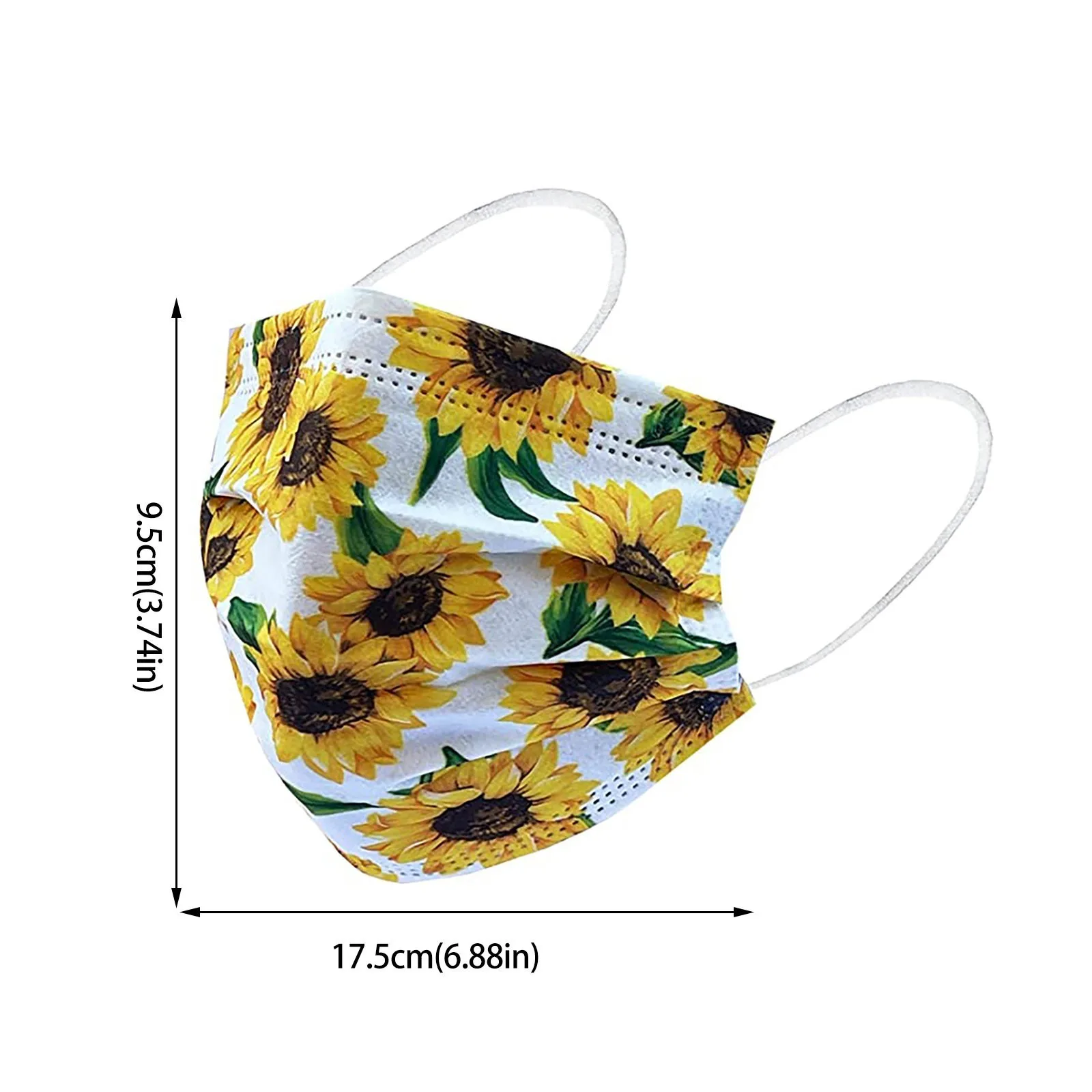 50 шт., одноразовые защитные маски с принтом подсолнухов