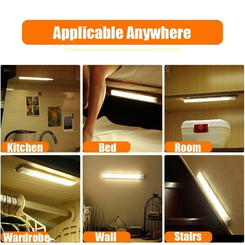 Перезаряжаемый светодиодный светильник с датчиком движения, беспроводной ночник для шкафа, гардероба