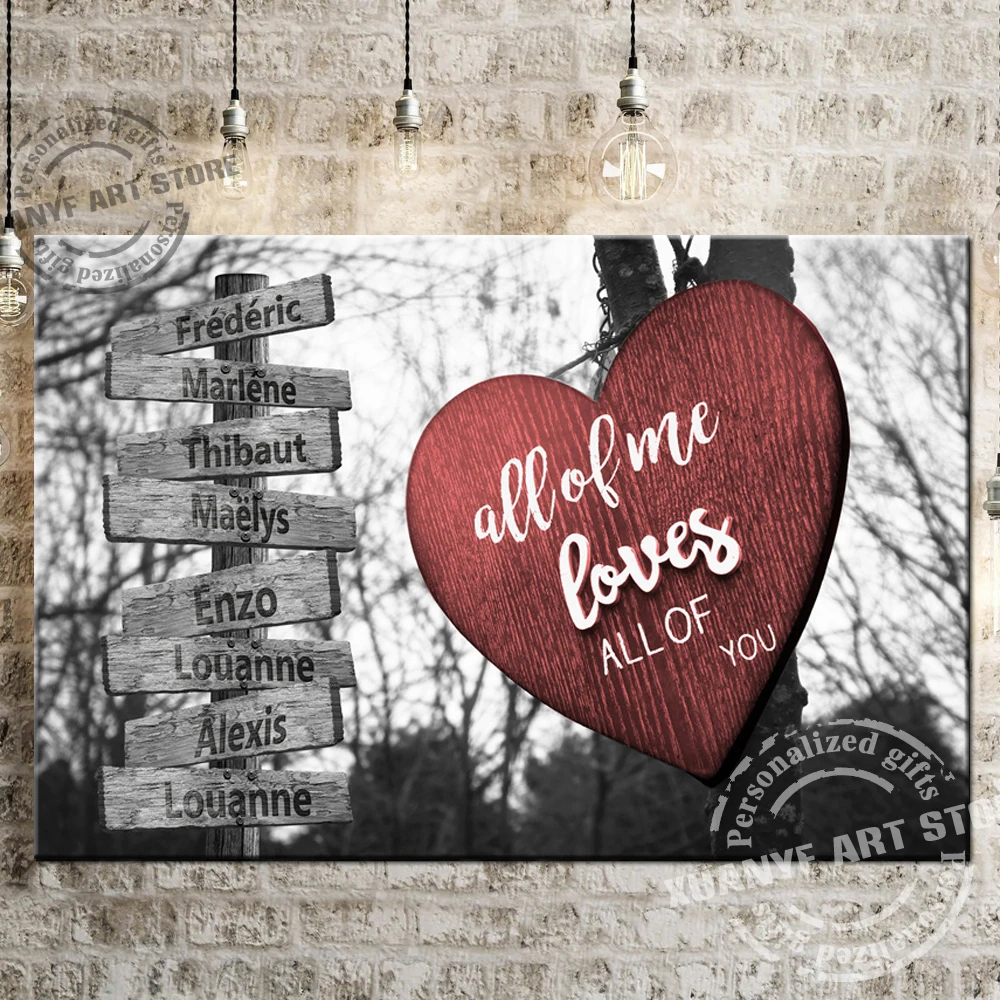 ♥Красный любовь сердце персонализированные мульти имена Премиум Холст плакат