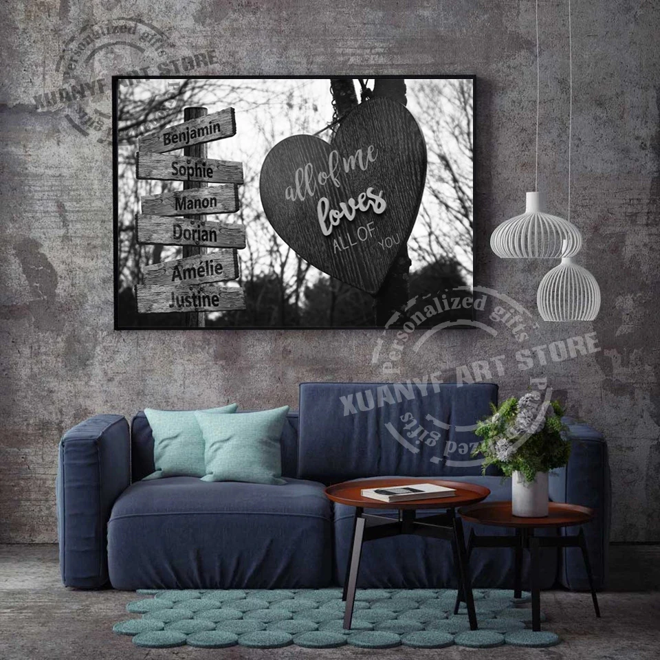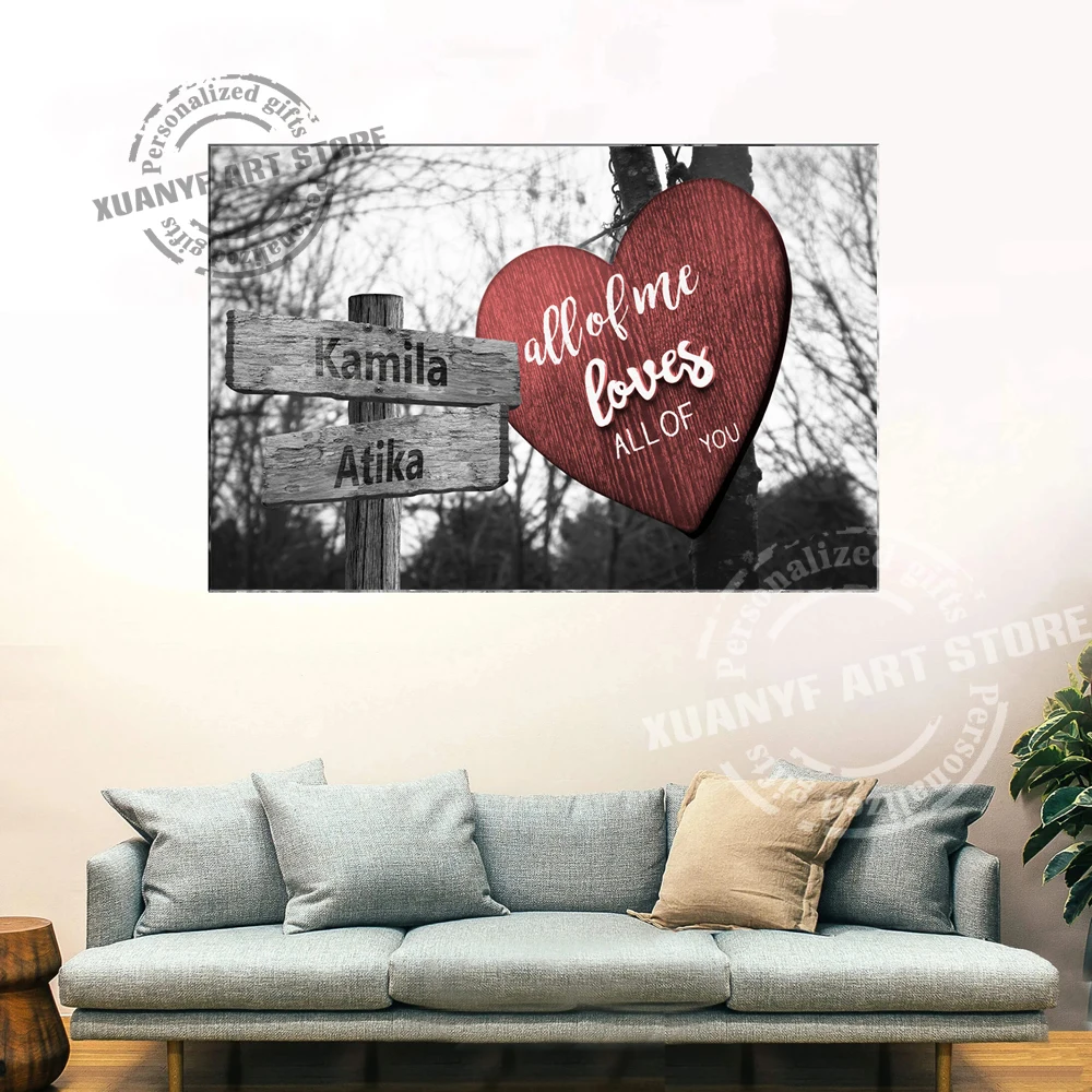 Красное сердце, персонализированные имена, Премиум Холст, живопись, постер с именем на заказ, подарок для свадьбы, настенное искусство, декор для гостиной