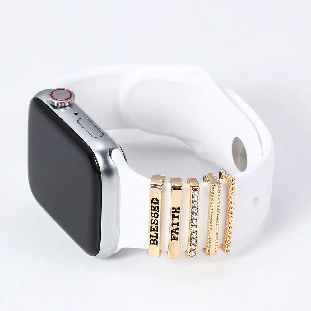 Металлические подвески, декоративное кольцо для Apple Watch, ремешок с алмазным орнаментом, силиконовый ремешок для умных часов, аксессуары для iwatch, браслет