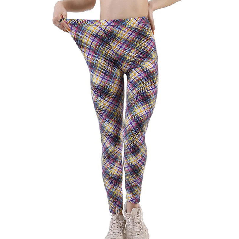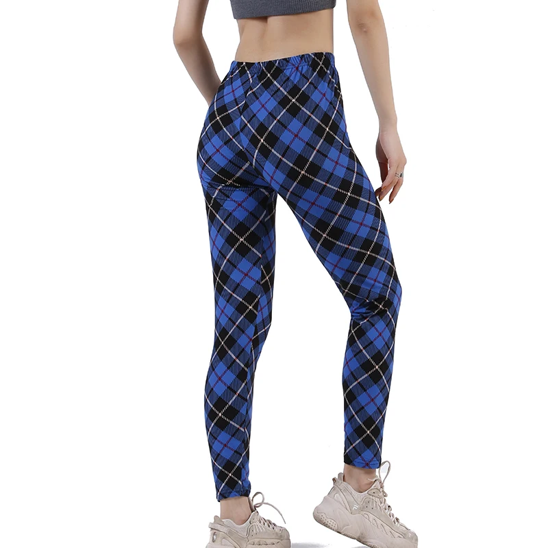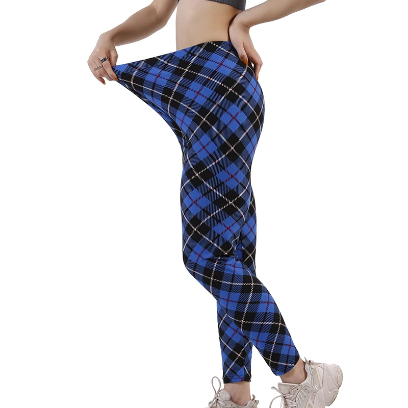 Женские леггинсы для фитнеса YRRETY, модные красные клетчатые Лоскутные эластичные леггинсы с высокой талией и принтом, с пуш-ап, до щиколотки, из полиэстера