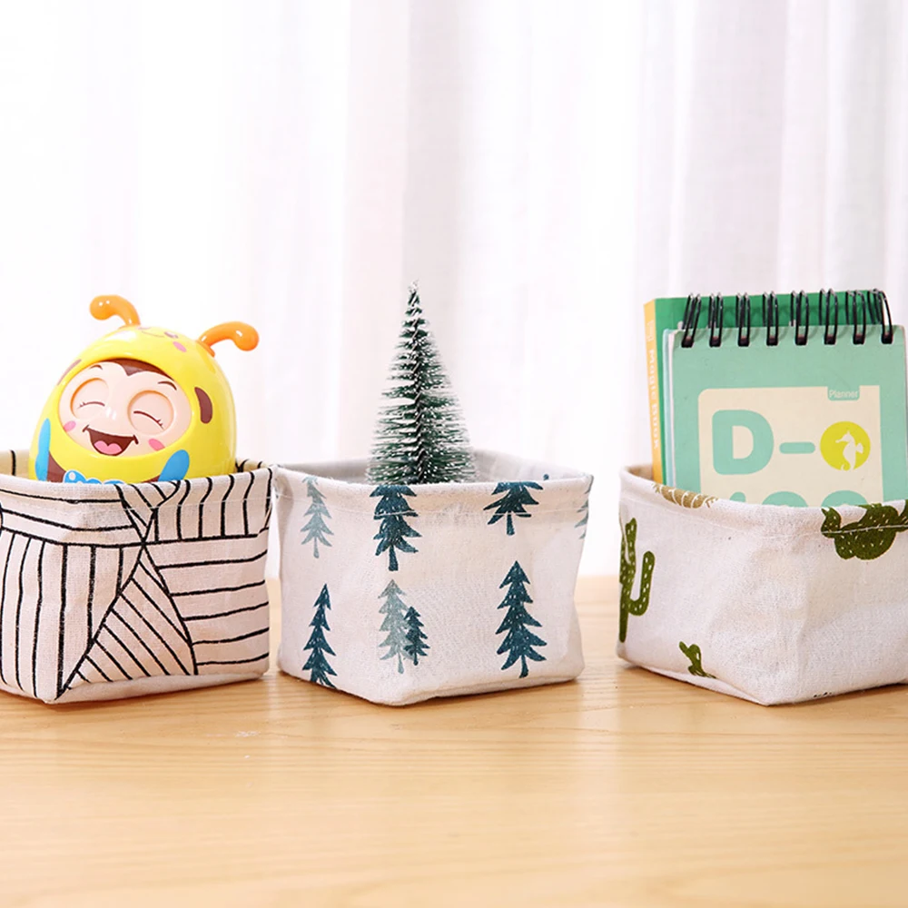 Настольный органайзер для макияжа, коробка для хранения канцелярских принадлежностей, коробка для хранения книг из хлопка и льна