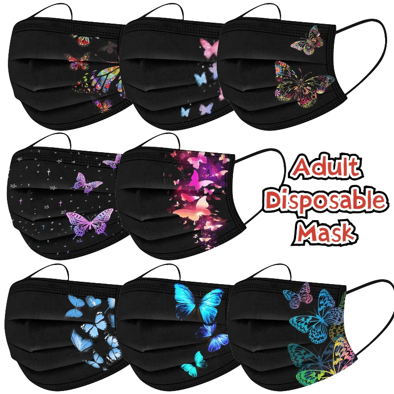 Черная одноразовая маска для взрослых, 10 шт., трехслойная дышащая маска, бабочка для лица, маски, хирургические однослойные маски