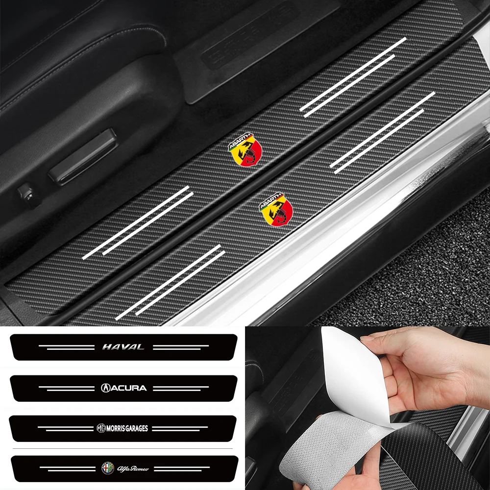 4 шт., защитные наклейки на порог автомобиля, из углеродного волокна