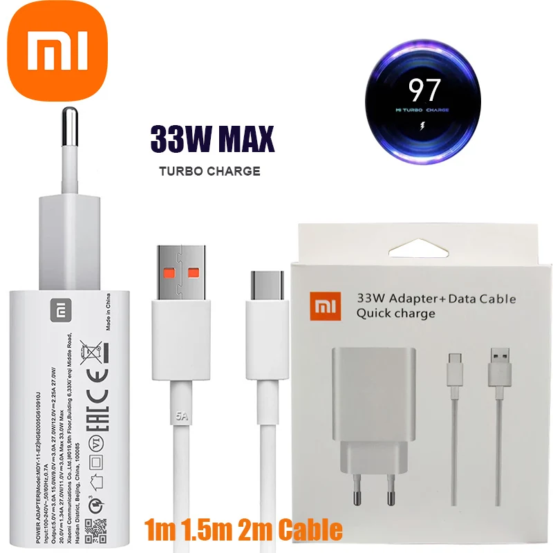 Быстрое зарядное устройство Xiaomi Mi 11 Lite 33 Вт Кабель Европейского типа C для Xiaomi Redmi K40 10X Pro Note 10 Pro Mi 10T POCO F2 M2 Pro X3 NFC