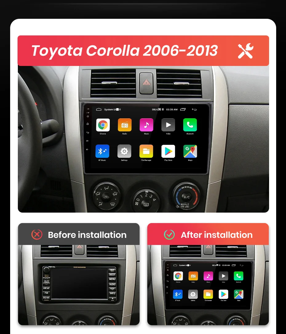 Автомагнитола AWESAFE PX9 для Toyota Corolla E140 E150 2006 -2013, мультимедийный проигрыватель на Android, 2DIN, 8 Гб