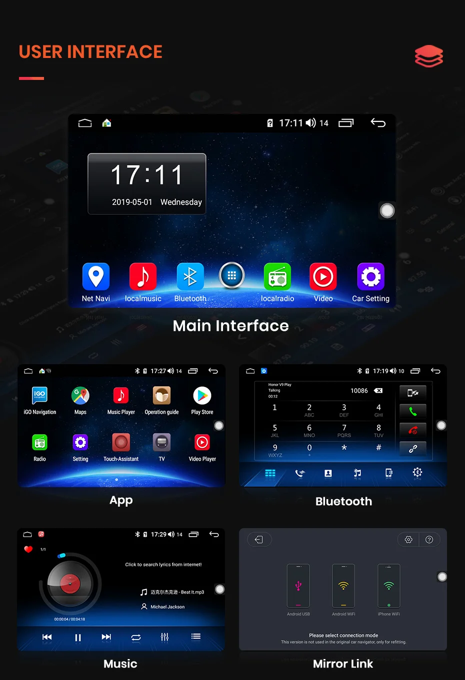 screen display9 inch 2.5D screen, 1024*600 resolution
