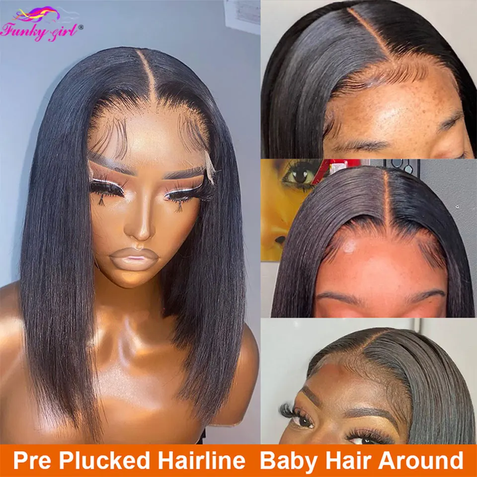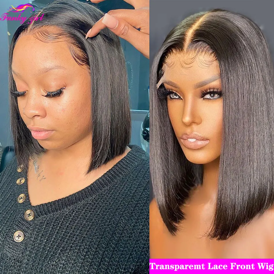 Парик с прямыми волосами Боб, парики из человеческих волос на сетке спереди для черных женщин, 13x4, прозрачный парик на сетке спереди, 150%, Бразильские короткие парики