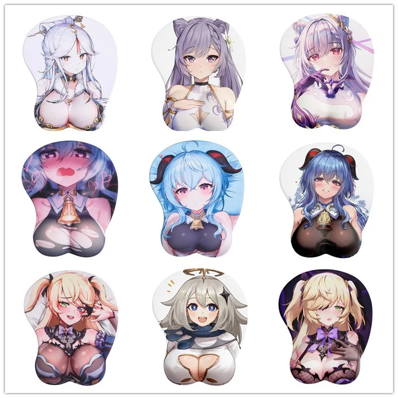 Игровой коврик для мыши Genshin Impact 3D Oppai с подставкой на запястье Ganyu Keqing Paimon Fischl силиконовый гелевый коврик для мыши Коврик для мыши