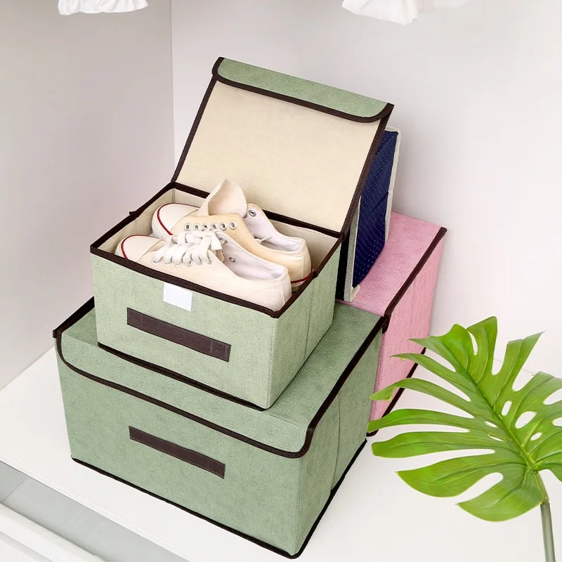 Ящик для хранения из хлопка и льна с крышкой, 2 размера, органайзер...