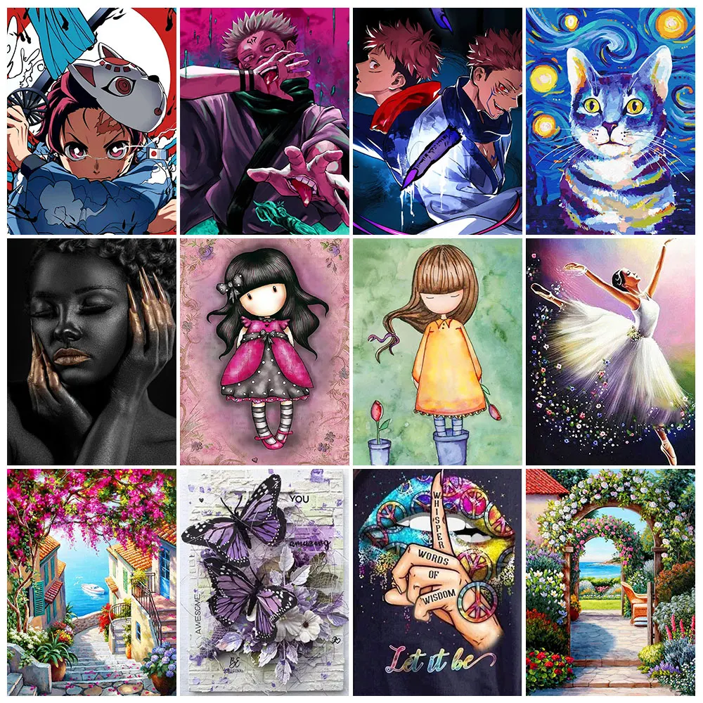 5D алмазная живопись, полный круг, аниме портрет, картина, алмазная вышивка, пейзаж, мозаика, вышивка крестиком, домашний декор, искусство, квадраты
