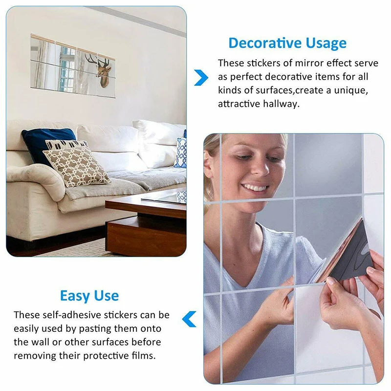 Описание:Это украшение, а не замена полного зеркала.Пленка может быть нанесена на гладкие, чистые поверхности, такие как обои, двери, окна и шкафы.Снимите синюю защитную пленку на поверхности, а затем получите Видимый зеркальный эффект.Декоративное использование: эти наклейки с зеркальным эффектом служат идеальными декоративными элементами для всех видов поверхностей, включая гладкую стену, поверхность плитки, металлическую поверхность, стеклянные окна и пластиковую поверхность для создания уникального, привлекательного коридора, дом, офис, магазин, торговый центр и так далее.Большая посылка, защитная пленка: есть 16 наклеек с зеркальным эффектом, которые входят в комплект, достаточное количество для обширного украшения, экономя ваше время и энергию, больше выбора предметов. Синие клейкие пленки на поверхностях наклеек обеспечивают защитные покрытия для наклеек, чтобы поддерживать и гарантировать прекрасный зеркальный эффект.Премиум-Материал: Изготовлен из высококачественного ПЭТ, эти наклейки нетоксичные, водонепроницаемые, коррозионно-стойкие и экологически чистые, не наносящие вреда здоровью человека и обеспечивая вам экологически чистый путь к трансформации.Простота в использовании: Эти самоклеящиеся наклейки могут быть легко использованы, наклеив их на стену или другие поверхности, прежде чем снимать их защитные пленки. Вы можете получить более крупный узор, который вы хотите, на декорированной поверхности с этими наклейками 15x15 см, замечательные материалы DIY для работы с вашими детьми и помочь им развить интеллект, который приносит вам больше удачи.Использование и дизайн: эти наклейки имеют две стороны. Шаг 1: Снимите желтую защитную пленку и наклейте ее на гладкую поверхность. Шаг 2: Снимите защитную пленку синего цвета, а затем Отобразите прозрачный зеркальный эффект. Вы можете наклеить эти наклейки в любом стиле DIY.Простота в использовании: каждое зеркало покрыто защитной пленкой, которую необходимо снять перед использованием. Потому что они такие же, как светильник, как перо, и их можно просто приклеивать, не требуя много работы. Хорошее прилипание к стене и шкафуЛегко: плитка очень светильник, легко крепится и снимается практически на любой поверхности! Эти легкие плитки являются прекрасной альтернативой тяжелым, реальным зеркаламШирокое использование: маленькие зеркала можно прикрепить в любом месте. Как зеркало (несколько плиток вместе) или как украшение (круглые или квадратные маленькие зеркала в связи с татуировками на стене). Подходит для спальни, стены, зала шкафа, детской комнаты, двериМатериал: экологически чистый PS, безопасный, безвкусный, не так легко сломать, как стекло, обработка края, без травм, безопасный и прочный