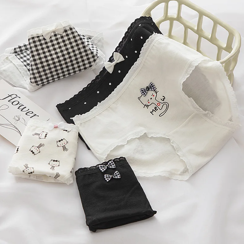 Женские хлопковые трусики, Симпатичные трусики с мультяшным котом, нижнее белье со средней посадкой, мягкое дышащее нижнее белье