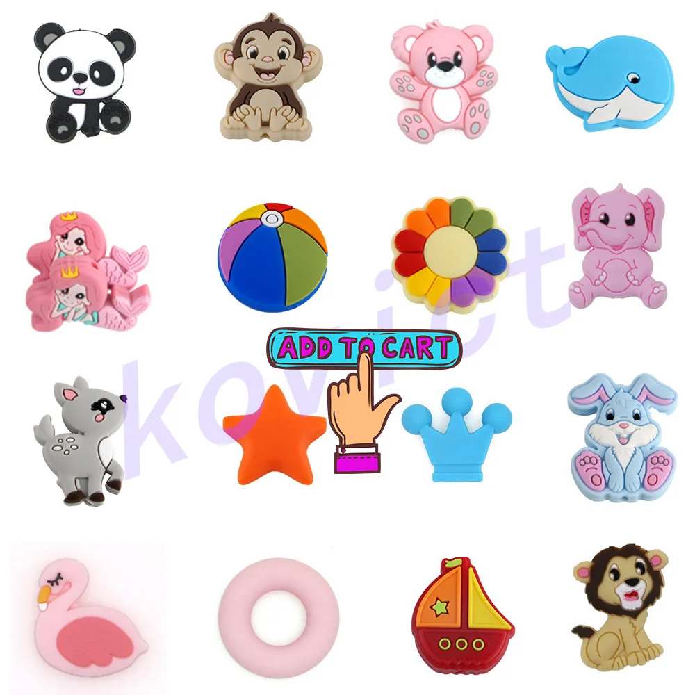 Kovict 1 шт. Силиконовые Прорезыватели для зубов для малышей с рисунками животных, прорезыватель для зубов, Подвески, DIY соски, цепочка, аксессуары для малышей