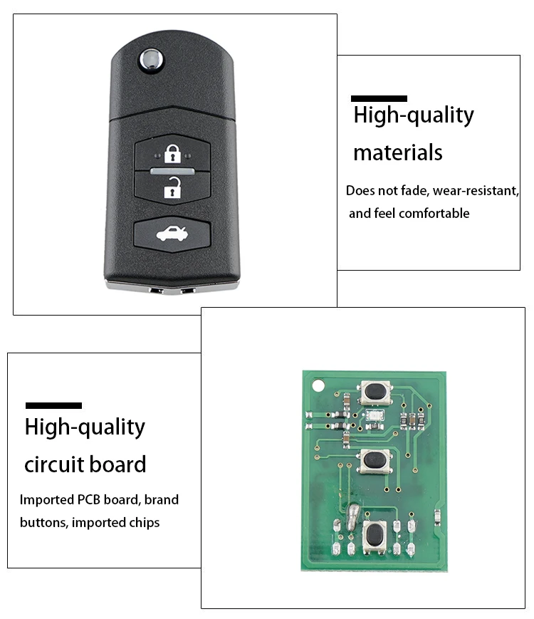 2. Продукт включает в себя корпус ключа, лезвие, печатную плату, чип и батарею. Это полный дистанционный ключ.