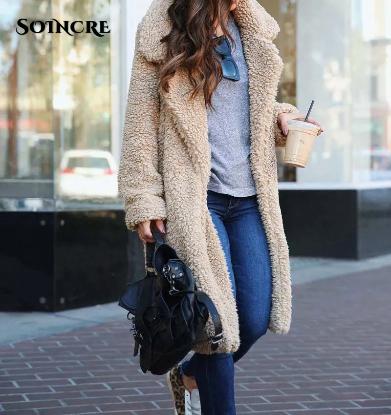 Осень-зима 2021, длинное пальто, Женское пальто из искусственного м...