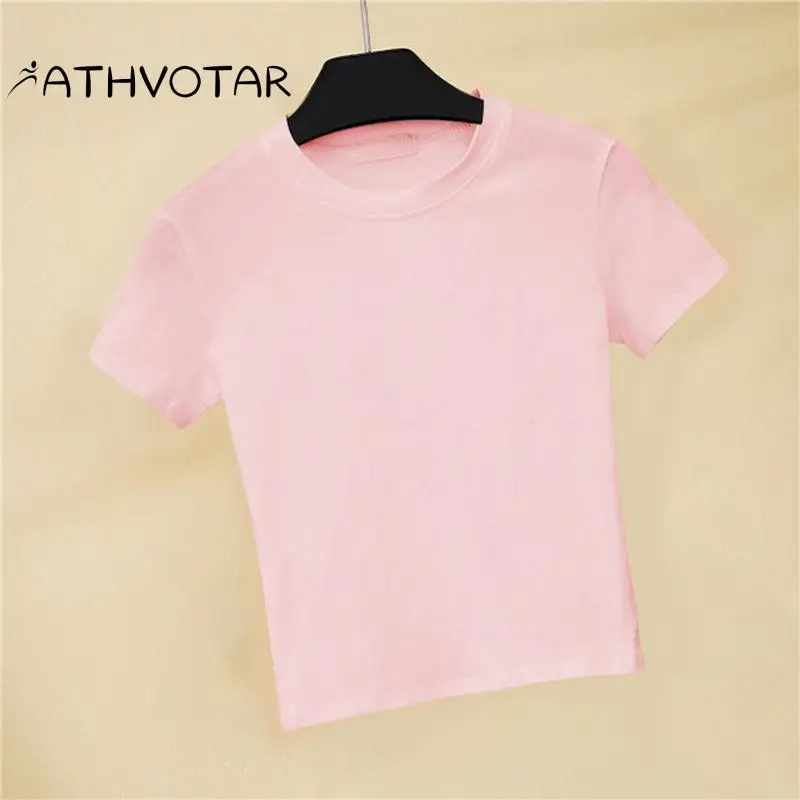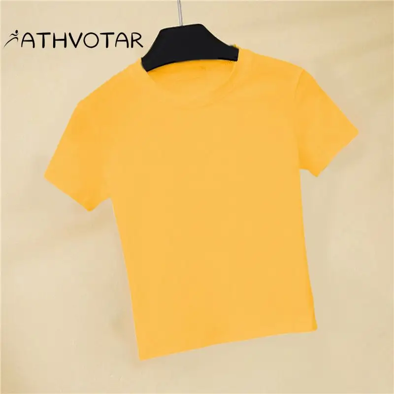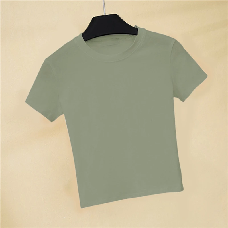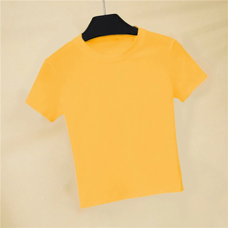 Кроп-Топ женский хлопковый с круглым вырезом и коротким рукавом