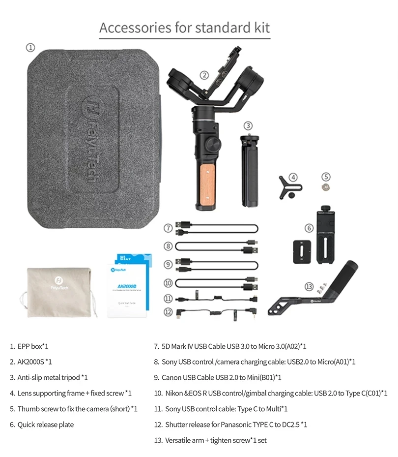 Стабилизатор камеры FeiyuTech AK2000S, 3-осевой шарнирный Держатель Для беззеркальных камер, подходит для камер Canon, Sony, Nikon, AK2000C