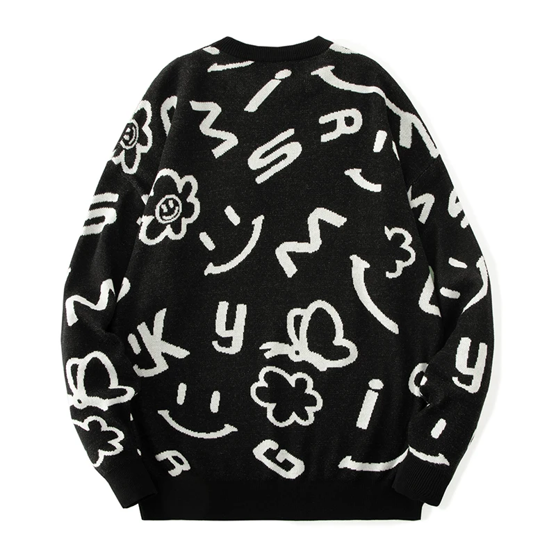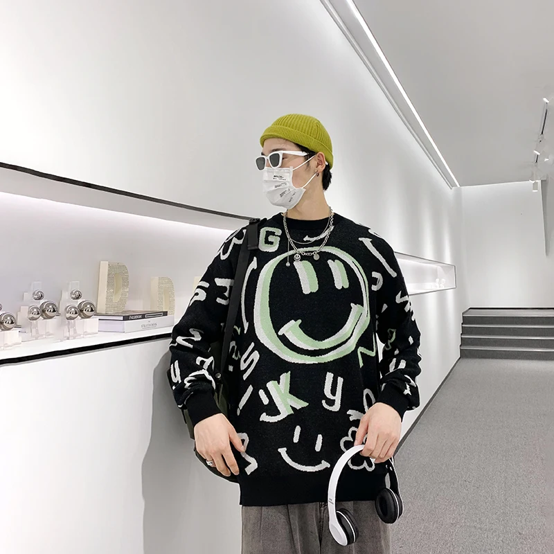 Мужской кардиган GlacialWhale, вязаный мужской зимний модный свитер 2021 года, новый свитер со смайликом, мужские повседневные свитера большого размера, черный свитер для мужчин