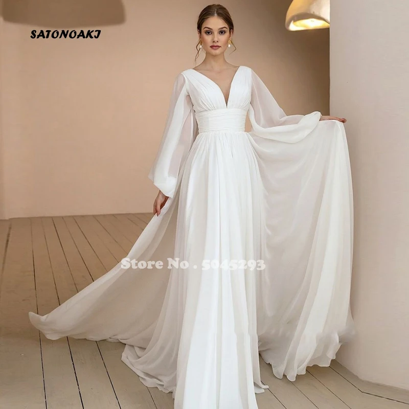 Свадебное платье в стиле бохо с рукавами 2021, простое пляжное шифо...