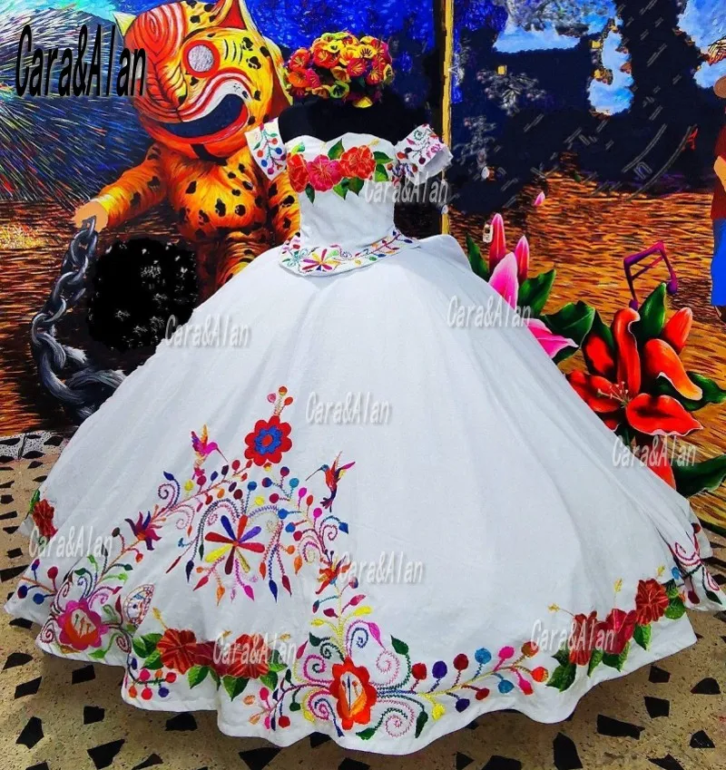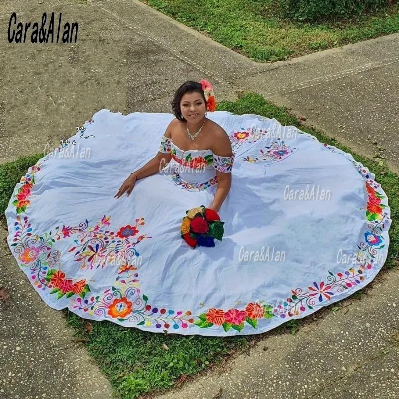 Платья Charro с мексиканской вышивкой 15 лет, платья Quinceanera с открытыми плечами, милые платья для выпускного вечера 16, abiti da cerimonia