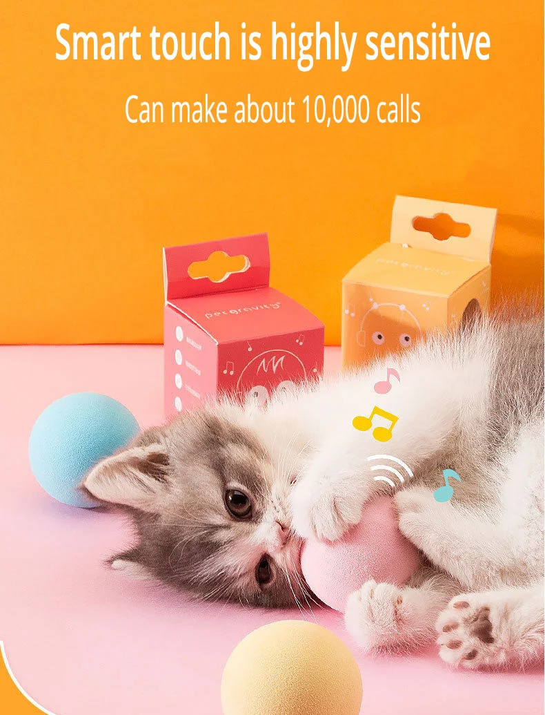 Игрушка для кошек, интерактивный мяч с умным касанием, звук кошачье...