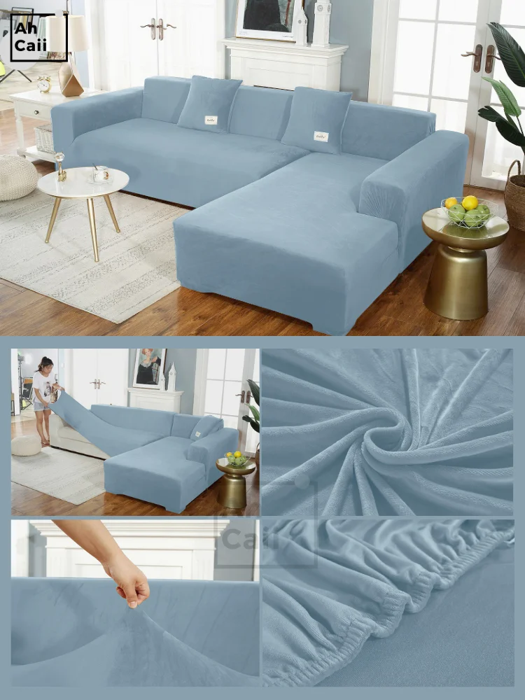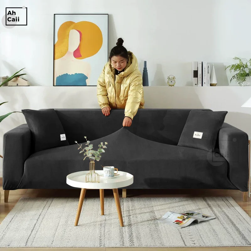 Черный чехол для углового дивана, бархатный чехол для дивана в гостиную, домашних животных, чехлы для дивана, растягивающийся защитный чехол для дивана, толстый чехол для дивана