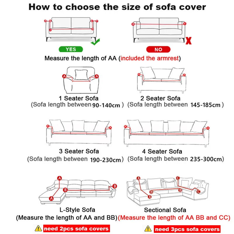 -Обратите внимание, что характеристики: 1 местный 90-140 см, 2 местный 145-185 см, 3 местный 190-230 см, 4 местный 235-300 см-Один чехол. Если у вас есть l-образный диван, вам нужно заказать 2 чехла. -Например: если AA = 145-185 см, BB = 190-230 см, вам нужно заказать (1 шт. 2-местный + 1 шт. 3-местный)-Если AA = 190-230 см, BB = 235-300 см, вам нужно заказать (1 шт. 3-местный + 1 шт. 4-местный)-Внимательно посмотрите на таблицу. Если вы не можете выбрать, напишите нам, мы вам поможем.