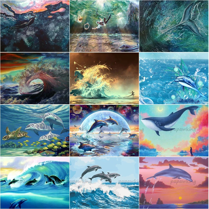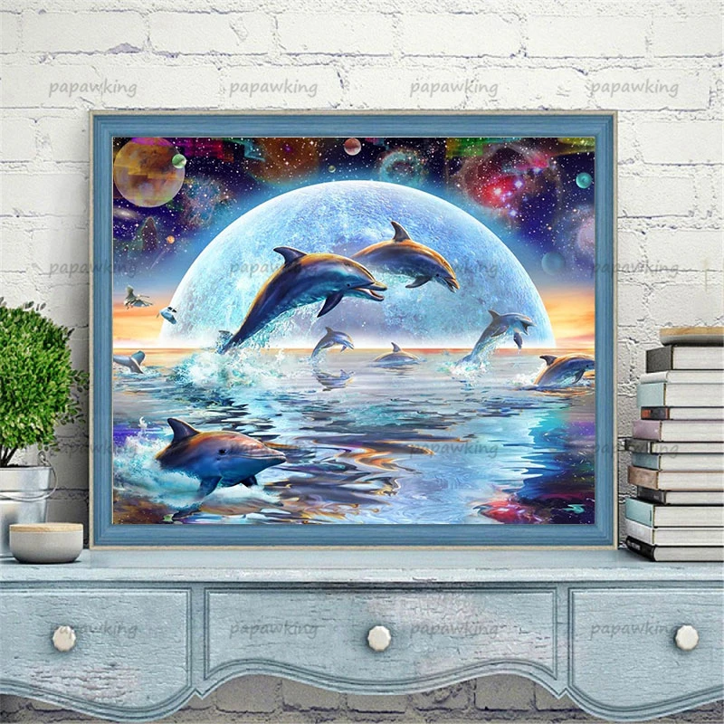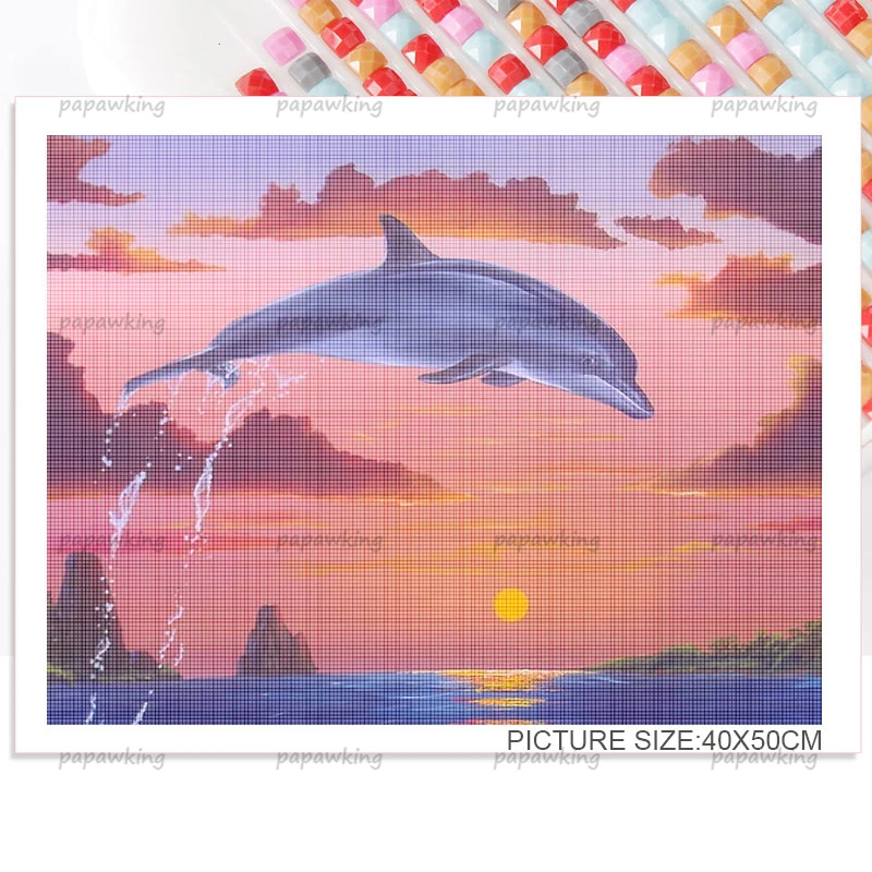 Алмазная живопись дельфин красочное небо море полная Алмазная вышивка крестиком Мозаика Стразы детская ручная работа Искусство Декор подарок