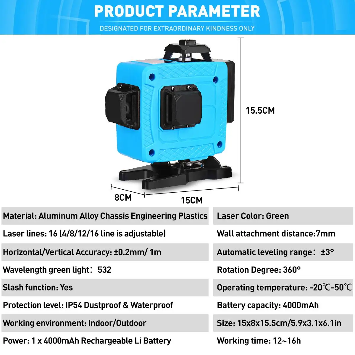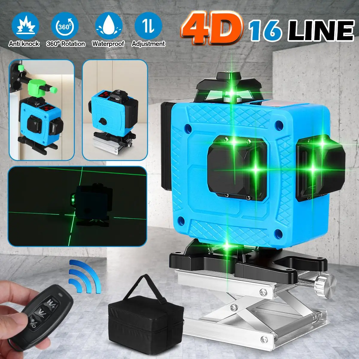 16 линий 360 горизонтальный вертикальный крест 4D зеленый светильник лазерный уровень самонивелирующийся супер мощный лазерный луч