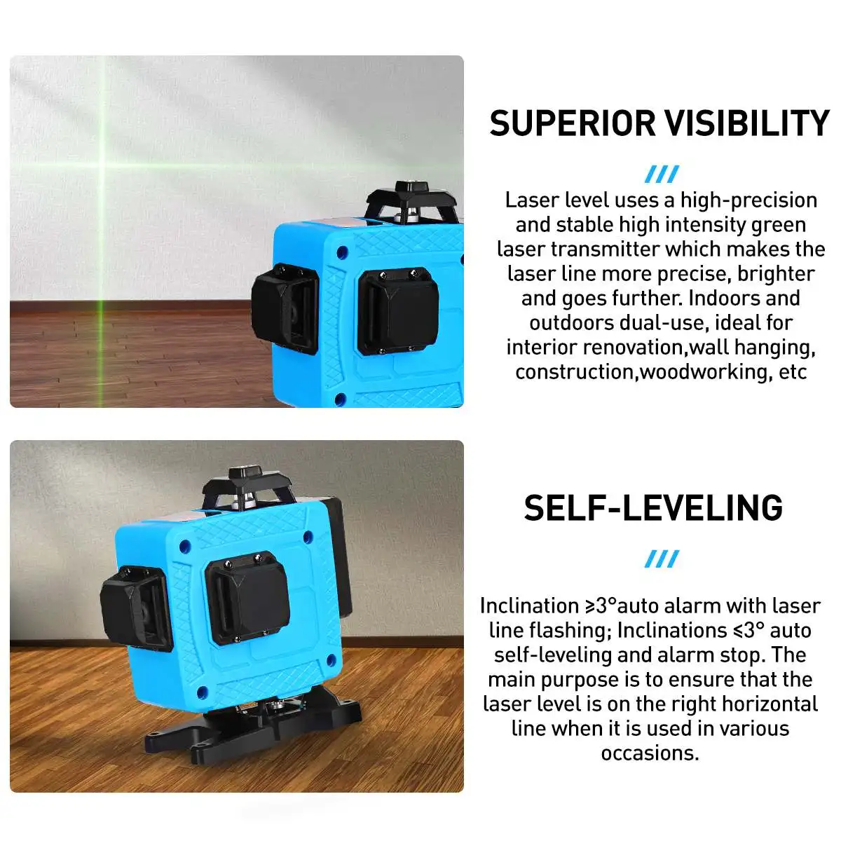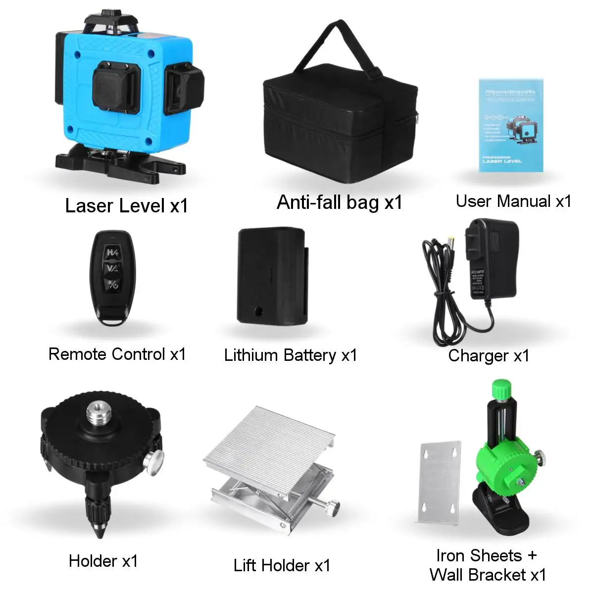 Лазерный уровень FASGet, 16 линий, 4D, самонивелирующийся, 360 градусов, горизонтальный и вертикальный крест, супермощный зеленый лазерный уровень