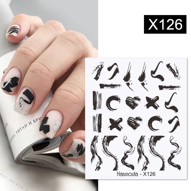 Цветные Волнистые Водные Наклейки для ногтей Harunouta, черные, бел...