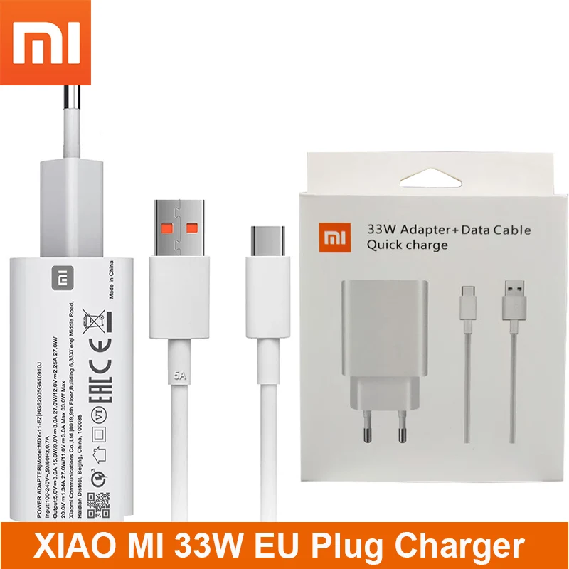 Зарядное устройство Xiaomi 33W EU Быстрая зарядка 100 см 5А кабель типа C для Mi 11 10 10T 10X Note 10 Lite X3 F3 Redmi K30 K40 Pro
