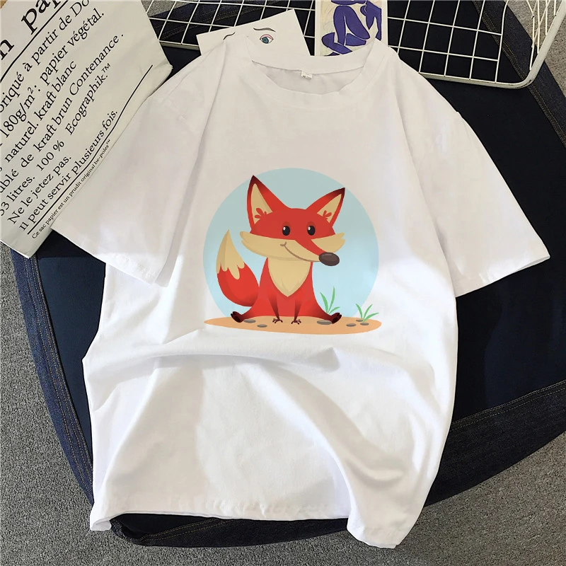 Женская футболка с рисунком милой лисы и круглым вырезом, футболка с графическим принтом в стиле Харадзюку, летняя футболка с коротким рукавом, забавная футболка, женская футболка